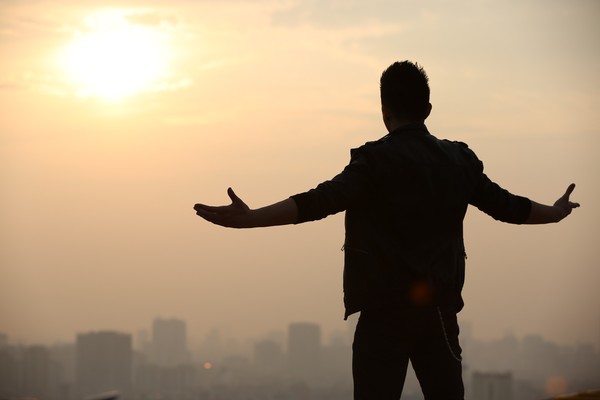 Man holding open sign